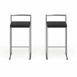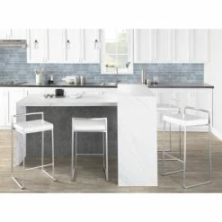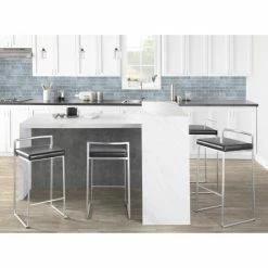 Upgrade your seating with the Forrest Bar Stool from Silver Orchid. The sleek metal frame features a stainless steel finish and a thick faux-leather seat available in your choice of black or white. Relax while you eat breakfast and rest your feet on the footrest or pull the bar stools out and use them for extra seating for guests.