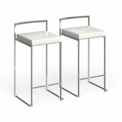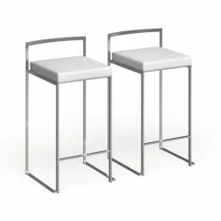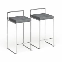 Crafted with clean, modern lines, this set of two Forrest counter stools from Silver Orchid will bring minimalist elegance to your space. Each stackable stool features squared frame legs with a footrest and a low, open arched backrest in a stainless steel finish. A foam-padded seat available in a variety of upholstery colors and materials completes the look and comfort of this charming set.