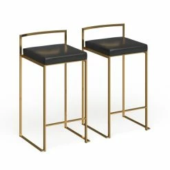 Crafted with clean, modern lines, this set of two Forrest counter stools from Silver Orchid will bring minimalist elegance to your space. Each stackable stool features squared frame legs with a footrest and a low, open arched backrest in a stainless steel finish. A foam-padded seat available in a variety of upholstery colors and materials completes the look and comfort of this charming set.