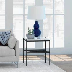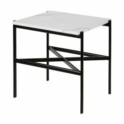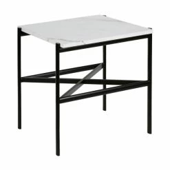 Geometric design takes this industrial modern side table to the next level. A seamless blend of mixed materials gives this table an industrial style that’ll make your space looks warm and inviting. Easy to assemble and easy to style, the faux marble top and blackened bronze hardware make it the perfect addition to your living room or bedroom ensemble.