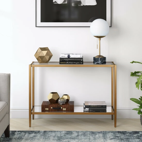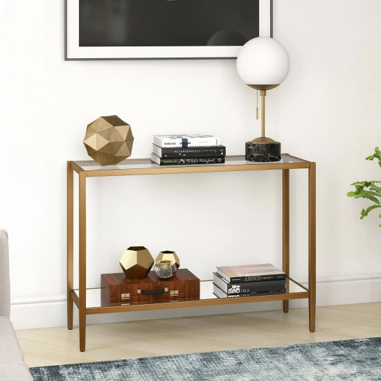Add to your living space with this mirrored accent table. This table has a hand-painted finish with a steel frame. The table is finished in an antique brass with a mirrored glass top. An upper and lower shelf allow for optimum space and comfort.