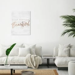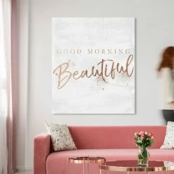 Good Morning Beautiful Rose Gold, is a skillfully made Modern & Contemporary art piece by real artists. With an overarching Bronze color, this fine art print is the perfect finishing touch to your home decor theme. Typography and Symbols design with a Beauty Quotes and Sayings theme will bring you the perfect wall art