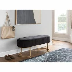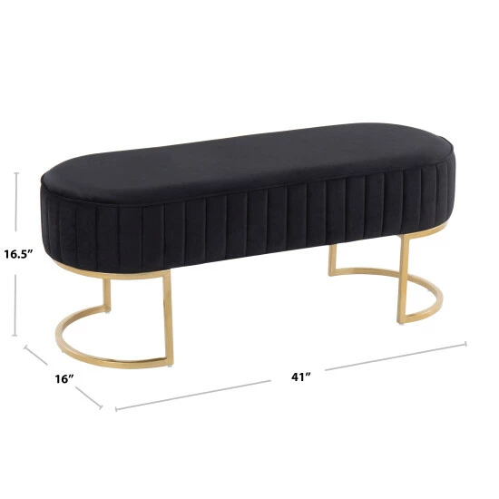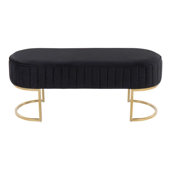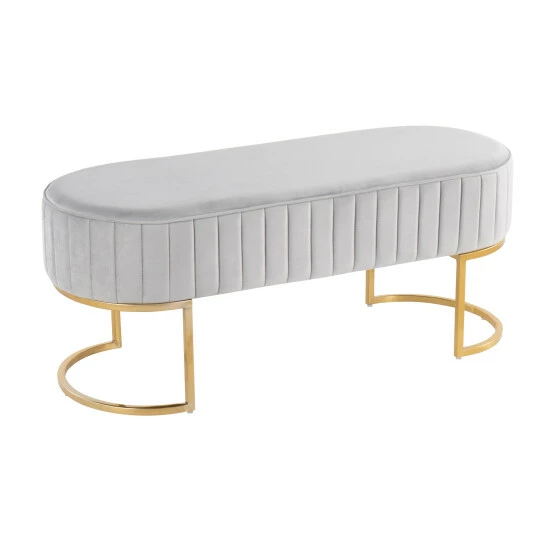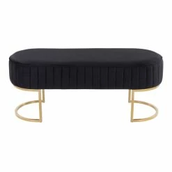 Glamorous and confidently contemporary, that’s the Gregor Pleated Bench. Featuring a geometric gold frame and an elegant velvet upholstered seat with vertical pleating, this bench can be used in an entryway or as extra seating. Available in various colors, choose the one that’s right for you.