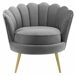 Glam up your living room with this accent armchair. This chair is upholstered in durable stain-resistant fabric and features a scalloped edge design for a high-end appearance.
