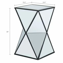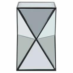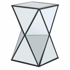 Update your home decor with this silver angular mirror accent table. This rug has a unique geometric shape and is made of metal and glass. From all angles, this multi-faced mirror side table’s surface reflects and refracts light, lighting up the look of any room.