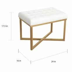Supremely glamorous and decidedly chic, this tufted ottoman is the perfect companion to any vanity. The compact size is designed with resilient materials for lasting use, and the pure white velvet is matched with warm gold for a touch of glitz and luxury.