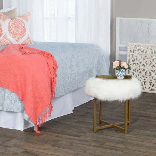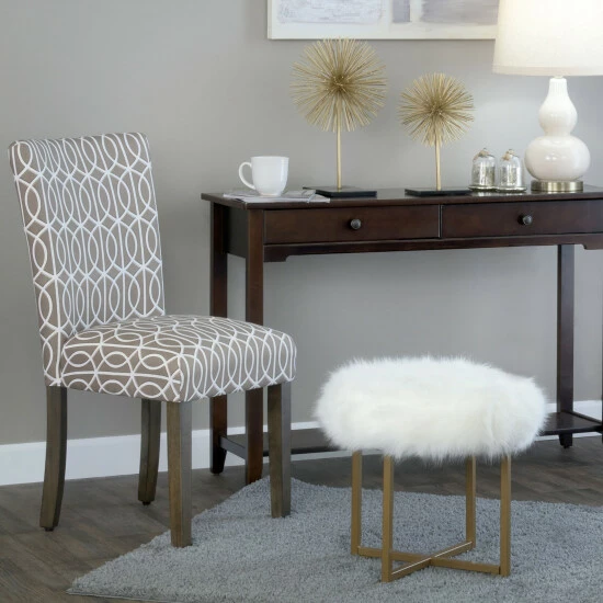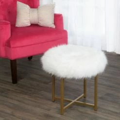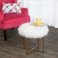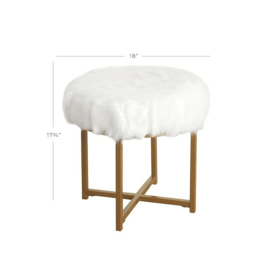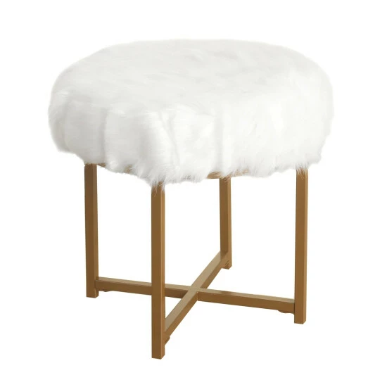 Go for glam with this soft, plush faux fur stool. Offered in white faux fur with metal legs in a gold finish, this fashion-forward glam ottoman will invoke conversation and comfort. Combine this furry stool with an accent chair or pair two together for a fun look at the end of a bed. Looking for a different color? Other HomePop faux fur items are available in blush pink, black and soft gray as well as in square, round or rectangular shapes. Easassembly; spot clean as needed.