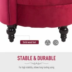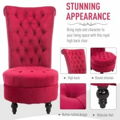 Refresh your home with this striking, luxurious accent chair. The striking red velvet upholstery lends an eye-catching flair to any decor, while the high, scrolled, button-tufted backrest creates a striking profile. Featuring thick padding and a sturdy birch frame, the chair offers lasting comfort and support, and it doubles as an ottoman footrest for versatility.