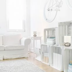 - White faux silk cylinder shades measure 6.5’D x 7.5’H