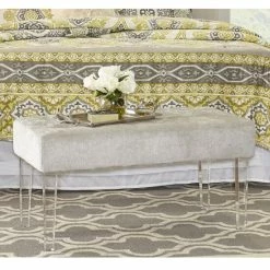 - Made of wood, acrylic, hardware, foam, and polyester fabric