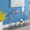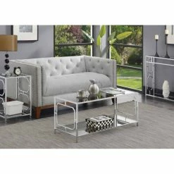 Instantly transform your living room decor with the Silver Orchid Hitchie Chrome Coffee Table. The sleek and stylish construction boasts a modern contemporary style that will have your guests in awe. With a clean-line silhouette and one octagonal cut-out adorning each side frame, this accent piece will create the essence of elegance in any room in your home. The frame is made from chromed metal which makes it long-lasting and easy to maintain. Both the tabletop and the bottom shelf are made from clear tempered glass, making them easy to clean. This two-tier unit provides enough display and storage space for your favorite collectibles and a cup of coffee. Place in your home office or den and enjoy this beautiful glass table immediately with its simple 4-step assembly!ย