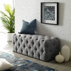 This bench’s rectangular silhouette blends effortlessly into any casual space.It is an accent piece that is sure to enhance the aesthetics of modern and contemporary household. Free of unnecessary embellishments, our adorable diamond tufted bench with velvet/linen upholstery and cushioned top is both a simple and functional piece. Give comfort and warmth to your home’s interior with the fun and functional rectangular bench.