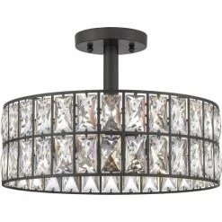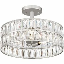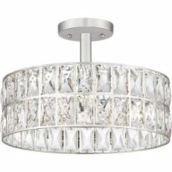 Light up your home like never before with this 3-light semi-flush mount. This flush mount provides a contemporary style with a drum silhouette. Rows of bevel-cut crystal glass surround the fixture for a stunning effect of light. It can be dimmed when used with incandescent or dimmable LED bulbs. With top grade materials and impeccable craftsmanship, you can’t go wrong with this piece.
