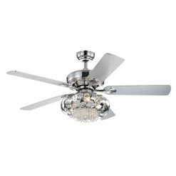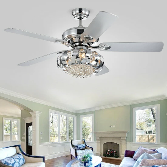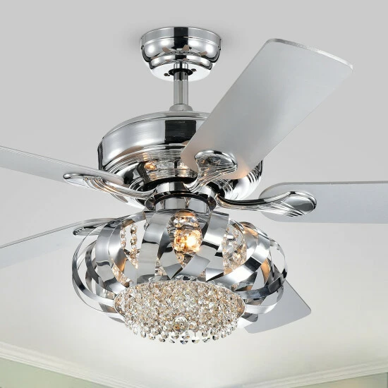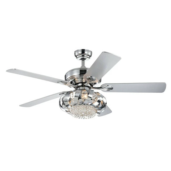 Keep the temperature comfortable year round. Save money from having to turn on the air conditioning. These are only some of the benefits of installing a ceiling fan. Bring an elegant appeal to your living space with this chandelier ceiling fan by Silver Orchid. It features a reflective chrome finish for even more sparkle and the wood blades reverse from silver to white maple for versatility to match your current decor at home. Remote controlled for your cooling convenience.