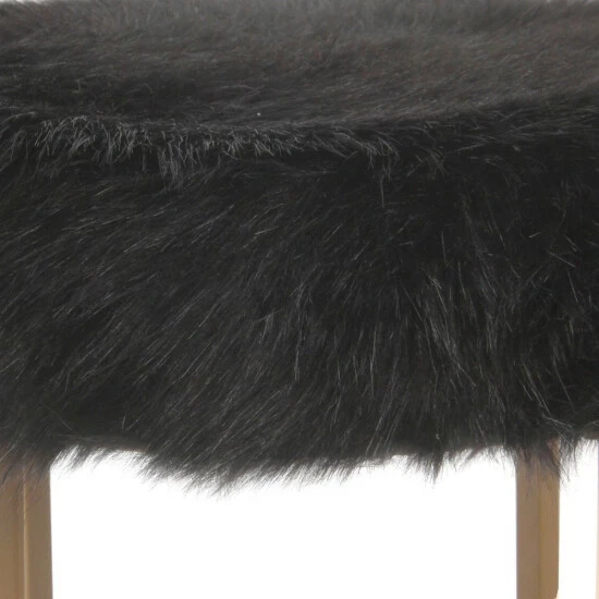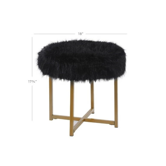 Go for glam with this soft, plush faux fur ottoman. Offered in black faux fur with metal legs in a gold finish, our fashion-forward glam ottoman will invoke conversation and comfort as you settle into its fuzzy top. Combine our round ottoman with an accent chair or pair two together for additional seating solutions in your living room or at the end of your bed. Looking for a different color? Other HomePop faux fur items are available in blush, pink, white and soft gray. Easy assembly; spot clean as needed.