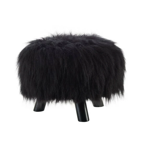 This Kelly black shag faux flokati ottoman is a perfect accent piece for someone who wants to create a bold, dramatic look in their home. Pair the Kelly ottoman’s black shag upholstery with a white shag rug to create a shockingly chic visual contrast.