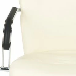 Executive sweet: the elegant and hard-working Kelly desk chair is headed for a corner office. With tall back and streamlined curvy arms, this comfy chair is adjustable and moveable with rubber wheels. Upholstered with white PVC faux leather for durability and easy care.