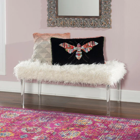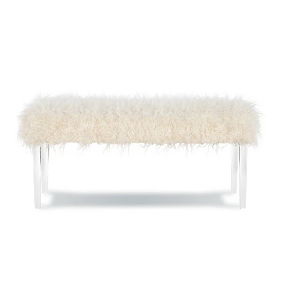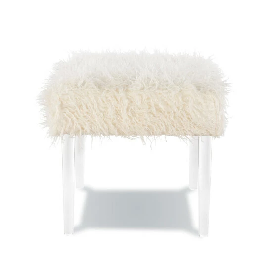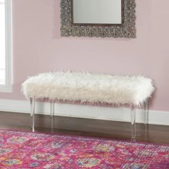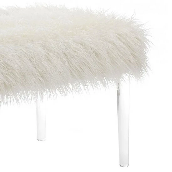 Glamorize your space with this flokati bench from Silver Orchid. A plump seat cushion with a faux fur cover adds glitz and luxury to your space while providing a soft surface for you to sit. Clear acrylic legs add a modish finish to this bench and ensure its sturdiness and stability.