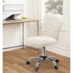 This rolling chair is a fun and hip combination of utilitarian function and fashionable details. The chair rolls on four casters and swivels 360 degrees, making it easy to move and reach around your office space, while the faux fur adds a touch of chic style.