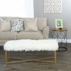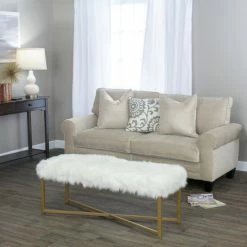Go for glamour with this long rectangle bench with metal base and upholstered fabric top. Offered in a range of fabrics, including white faux fur and lush velvets, this rectangle bench will instantly add unmistakable style to any room in your home. Use this fun yet functional bench as an entryway bench, an end of bed bench or as an ottoman bench in a living room for extra seating. Make a bold statement that is cozy and soft to the touch. Easy to assemble and maintain with spot cleaning as needed.