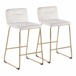 The Kerby Fixed-Height Counter Stool brings comfortable seating in a stylish and slim design to your home. The Casper features a padded upholstered seat and backrest supported by sleek metal sleigh legs with a gold finish. Available in a variety of upholstery colors.