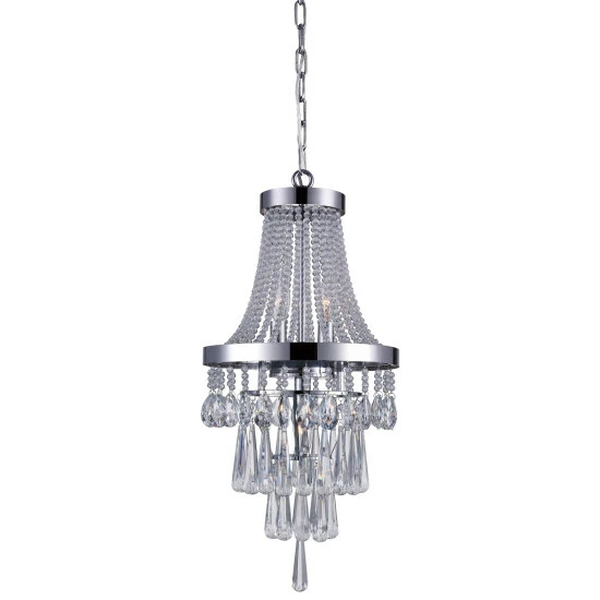 Dimensions: H 21′ x W 12′ x D 12′ – Chrome Finish – Requires 3 E12 Bulbs Max 60 W (Sold Seperately) – Comes with 72 ‘ of Chain – One year warranty against manufacturers defect.