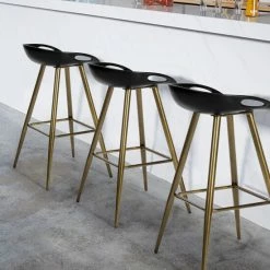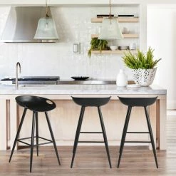 Enhance your kitchen or bar area with contemporary style when you add this barstool to your living space. This barstool features a black or dark bronze metal frame with conical legs, a molded plastic seat, and a low back, bringing subtle elegance to your interior decor. The bucket seat helps you sit comfortably, while the built-in footrest bar not only offers additional stability but also helps increase comfort by allowing your legs to hang a bit without dangling, allowing you easy access to and from the counter stool.