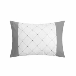 The stately grey and clean, bright white colors of this Monroe ten-piece bedding set from the Silver Orchid collection will transform your room in a matter of minutes with elegant French style. This set includes a comforter, a flat sheet, a fitted sheet, two pillow cases, two pillow shams, and three decorative pillows to cover everything your bed could possibly need.