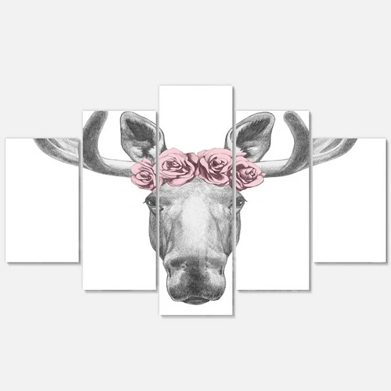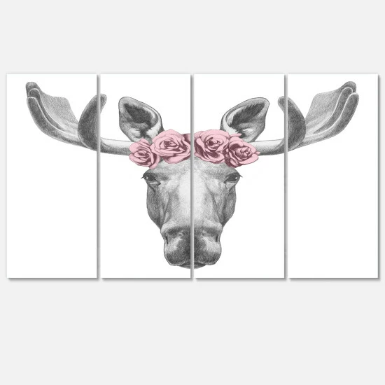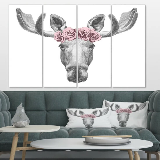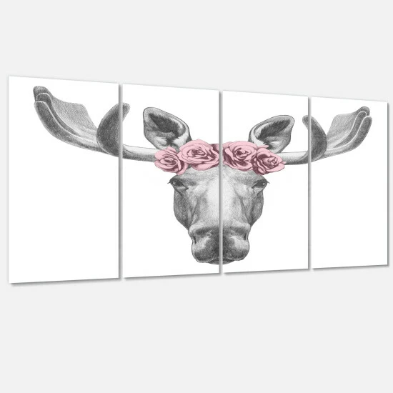 Bring Contemporary Abstraction to your home with this metal wall art. Available in several size, this Designart Moose with Floral Head Wreath Metal Artwork makes it the focal point of any room or office.