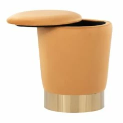 Graceful glam, that’s the Marcel Ottoman by LumiSource. This stylish ottoman features a luxuriously soft cushioned velvet top, chic gold metal base and a removable top for convenient storage. Available in a variety of upholstery color options, choose the one that fits your space the best.