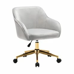 Completely upholstered in luxurious and soft velvet fabric, this swivel office chair offers both comfort and style for the home or office. It features a unique and contemporary seat shape with sloped arms for a modern look. Personalize seat height from 17.52 to 20.67 inches with the easy-to-adjust gas lift. It is ideal for use in any office setting, workspace, home office or even a game room table. Chair is easily assembled with minimal effort.