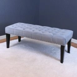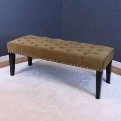 This lovely button-tufted velvet bench will add instant charm and beauty to any setting. Available in various colors, this bench will provide more than enough cushion and support. This bench features velvet upholstery and durable wood construction that can be enjoyed for years to come.
