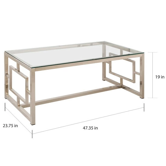 Give your home a new sense of sophistication with this beautiful Parker coffee table from the Silver Orchid Collection. The geometric shape of the sides, along with the accentuating tempered glass top, make this a minimalist fashionable piece that you will love.