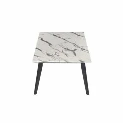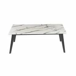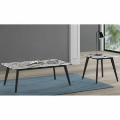 Treat your decor to a luxe, glamorous update. This stunning, rectangular coffee table makes any living room look a bit more upscale. The smooth tabletop is crafted of faux marble in elegant shades of black and white. The long, slim, angled legs add a mid-century modern vibe that brims with classic character. Pair this piece with a matching end table to beautifully complete your space.