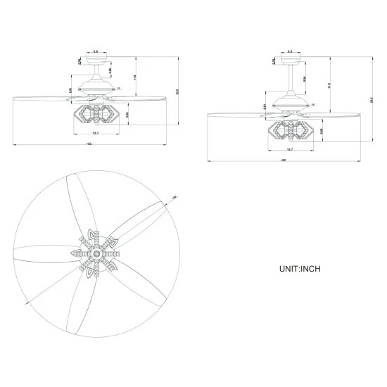 - Downrod Length(s): 4.9 in / 9.8 in Max