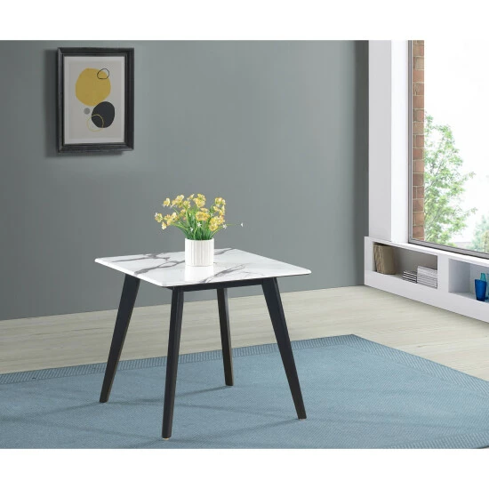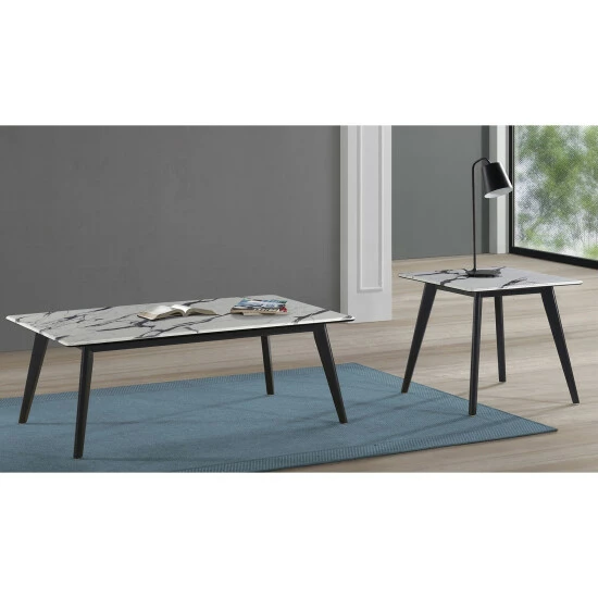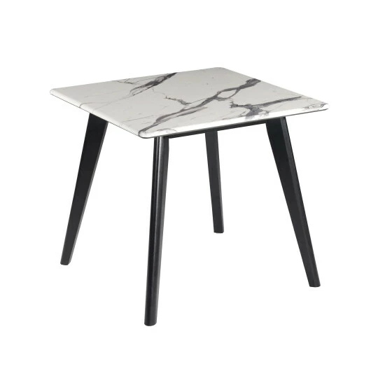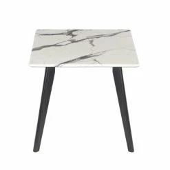 Complete a living room with a unique touch of character. This mid-century modern end table flaunts a bold, two-tone design that’s sure to catch the eye. The smooth, square tabletop is crafted of luxurious black and white faux marble. The tall, tapered, dark brown legs flow out at an angle for added visual appeal. Place this gorgeous table by your favorite chair or sofa for convenient surface space and striking, modern style.