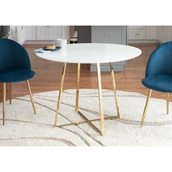 Full of Modern elegance, the Pugo 43″ Dining Table by Silver Orchid will elevate your room in effortless style. Perfect for weekday meals and weekend gatherings alike, the Pugo features a stunning gold geometrical metal base and a sleek round top. Available in a variety of amazing combinations, choose the one that fits your space perfectly.