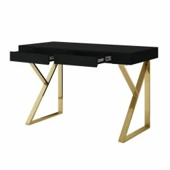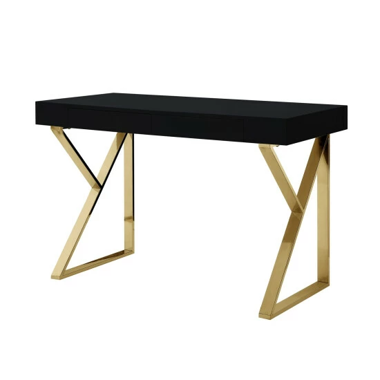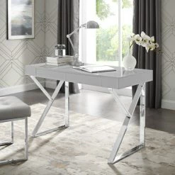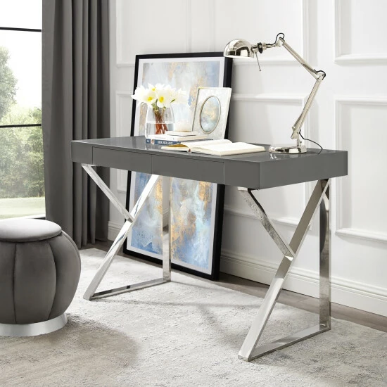 - CONTEMPORARY DESIGN – This unique luxe high gloss desk is ideal for your home office. The stylish kind of criss-cross design stainless steel shiny legs provide sturdy support while the glossy finish adds glamorous style. This practical fashionable desk offers ample surface room, creating that modern cozy atmosphere in your home and enhancing the surrounding decor