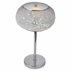 Dress up a side table with this one-light table lamp featuring a shiny chrome finish and a sparkling round shade. This beautiful lamp casts multidirectional illumination, shining bright light on a wider area.