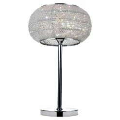 Dress up a side table with this one-light table lamp featuring a shiny chrome finish and a sparkling round shade. This beautiful lamp casts multidirectional illumination, shining bright light on a wider area.