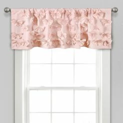 This gorgeous valance features cascades of handmade bows covering the full width of the valance. The feminine design lends charm and luxury to the ambiance of any room in your home, your bedroom, living room, bathroom dining room or even a nursery.