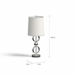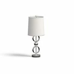 Brighten up any room in your home with this set of table lamps. Coming in a set of two, each lamp is topped with a crisp white fabric drum shade with slim chrome edging. The lamp body features an open circle design in brushed steel finish. Its modern silhouette can complement contemporary decor styles. This table lamps will instantly update any room in your home.