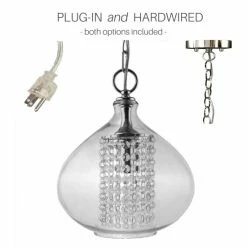 This beautiful Wallock hanging pendant from Silver Orchid features a glamorous K-9 crystal design accented by a gorgeous hand-blown glass frame. The Wallock pendant is available in either hard-wired or plug-in options to meet your home’s needs.