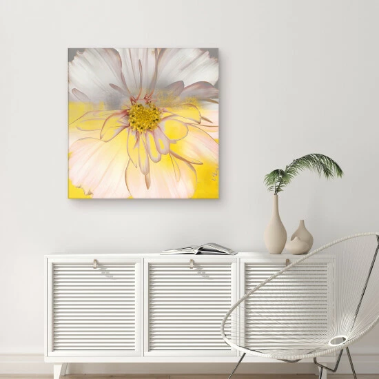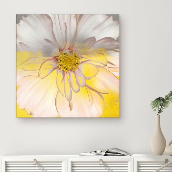 Uplift and enliven your space with the cheerful ‘Painted Petals XXXIV’ wall art by Alexis Bueno. The white, yellow and rose shades of this oversize flower print bring sunshine to your living room, bedroom or foyer, and the contemporary design is fresh and bright.
