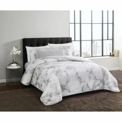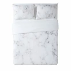 Welcome a casual, glam look in your bedroom with this duvet cover set. Made from 200-thread-count cotton, this set holds up well with a soft, durable bed covering. Grey marble patterning over a white fabric base exudes a contemporary look while maintaining a neutral, light tone. Machine washable for easy care, this set includes a duvet cover and two pillow shams for a low-maintenance coordinated look. Button closures keep this duvet cover secure to protect your comforter year round.