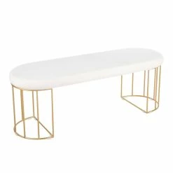 Opulent and confidently contemporary – that’s the Canary Bench. Features a captivating cage-like gold tone metal base with an elegant, elliptical velvet seat available in various modern colors. Definitely a bold touch of glamour for your seating needs.